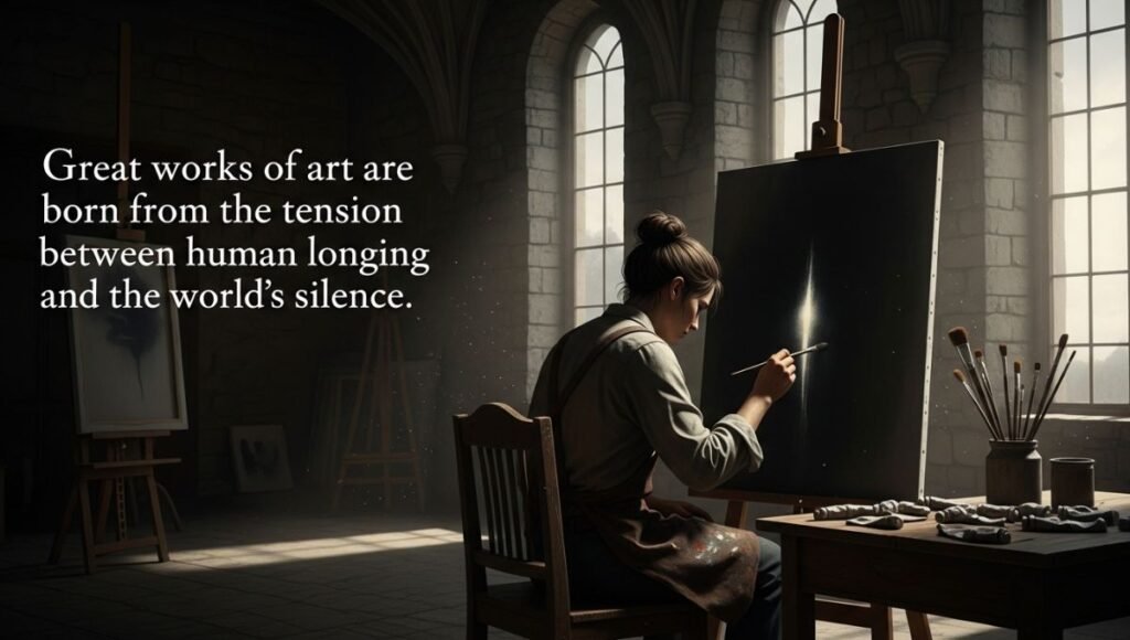 - Great works of art are born from the tension between human longing and the world’s silence.